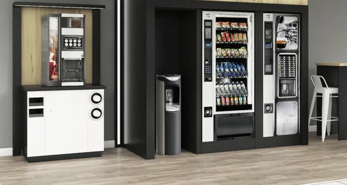 Plus de 100 salariés : pour les plus grandes entreprises, des appareils spéciaux, véritables cafétérias automatisées, sont nécessaires. Plus de vingt produits proposés, pour des débits de 30 litres à l’heure en moyenne.